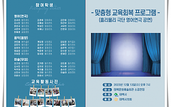 미래인재 진로탐색 멘토링 프로그램에 참여 문화 활동도 체험... "동기 부여 효과 및 입시 컨설팅 부분", 이와같은 프로그램이 더 많았으면... 태백시(시장 이상호)가 지난해 12월 더 나은 교육지구 프로그램의 일환으로 추진하였던 ‘미래인재 진로탐색 멘토링 프로그램’과 ‘서울대학교 과학콘서트 자연과학 공개 강연 참가’를 성공적으로 마무리했다고 지난 4일 밝…태백시 산소드림도서관, 겨울방학 독서특강 및 책놀이 운영주성돈기자 2023.12.29