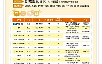 "파크골프 지도자 과정" 학습자 모집... 외부 전문 학습장 [태백파크골프장]에서 진행, 교육은 무료로 운영... 태백시(시장 이상호)는 오는 9월 2일부터 9월 13일까지 2024년 특화 프로그램인 파크골프 지도자 과정의 수강생을 모집한다고 밝혔다. 프로그램은 10월 2일부터 10월 24일까지 매주 수, 목요일 총 8회(총 16시간)로 평일반은 오후 2시…태백시청소년상담복지센터, 2024년 제3회 청소년축제 ‘시루의 여름밤’ 개최주성돈기자 2024.08.25