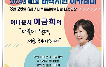 마을과 함께하는 배움과 돌봄, 태백더나은 교육지구... 지역교통공동체 활성화에 관한 연수의 시간을 가져... 태백교육지원청(교육장 권성자)은 5월 8일 태백고생대자연사박물관에서 교육지원청-시청-학교-지역주민이 함께하는 「2024 태백더나은교육지구 지역교육협의체 운영 설명회」를 개최하였다. 이번 설명회에서는 2024 태백더나은교육지구 정책과 사업, 지역교육협…산소드림도서관, ‘도서관과 함께 책 읽기’ 진행주성돈기자 2024.05.04