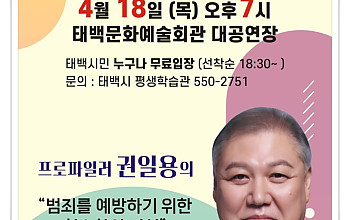 준법문화 확산과 학폭없는 따뜻한 학교를 만들기 위해... 저소득 청소년 2가구에 도배 장판 등 교체 실시... 청소년범죄예방위원회 태백지구(회장 전영수)는 지난 23일 태백시 황지연못 일원에서 준법 문화 확산과 학교폭력 없는 따뜻한 학교 만들기를 위한 학교폭력예방 캠페인을 실시하였다. 캠페인에는 춘천지방경찰청 영월지청(지청장 송준구)과 법무부 청소년범죄위원…제1회 삼성생명배 전국레슬링대회 태백시 선수 참가주성돈기자 2023.11.22