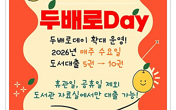 기존 월 1회에서 주 1회로 확대... 도서 최대 10권 대출… 시민 독서문화 활성화 기대... 2026년 3월 14일 태백시가 시민들의 문화 향유 기회를 확대하고 독서문화 활성화를 위해 도서관 대출 서비스를 확대 운영한다. 태백시(시장 이상호)는 도서관 ‘문화가 있는 날·두배로데이’를 기존 매월 마지막 주 수요일에서 매주 수요일로 확대 운영한다고 밝혔다.…