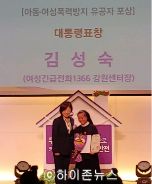 강원도, '김성숙 여성긴급전화 강원센터장' 대통령 표창 수상