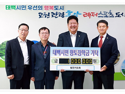 지난 2019년부터 6년째 태백의 인재육성을 위해 장학금 기탁... 고향민들이 조금이라도 힐링하며, 마음의 평화를 찾기를... 태백시발전기도회(회장 지석호)와 감리교태백지방남선교회연합회(회장 원정호), 백년가게 태백식육점(대표 권오종)은 지난 11월 6일 태백시에 향토장학금을 기탁하였다. 이날 기탁한 장학금은 태백시발전기도회 1백만 원, 감리교태백지방남선교…