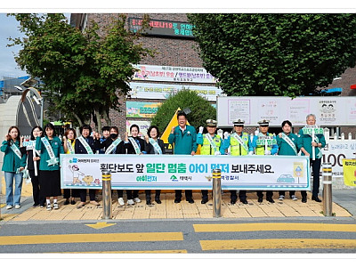 교통안전 캠페인 "일단멈춤, 아이먼저 보내 주세요!" 실시... 운전자들의 안전의식을 강화하고 어린이를 배려할 수 있는 운전문화가 확산되길... 태백시(시장 이상호)는 지난 9월 25일 황지초등학교 정문에서 태백경찰서, 황지초등학교, 모범운전자회 등 관계자 30여 명이 참여한 가운데 ‘아이 먼저’ 교통안전 캠페인을 실시하였다. 이날 캠페인은 ‘일단멈춤, 아…