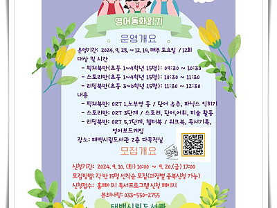 태백 시립도서관, 하반기 ‘영어동화읽기 교실’ 운영