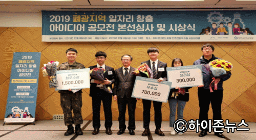 지역사회 발전을 돕는 일자리 아이디어... 일자리 창출 아이디어 발굴하기 위해 마련... 강원랜드 희망재단(이사장 고광필, 이하 재단)은 지난 8일 하이원 그랜드호텔에서 폐광지역 일자리 창출 아이디어 공모전 시상식을 개최했다고 10일 밝혔다. 한국노인인력개발원과 협력해 진행된 폐광지역 일자리 창출 아이디어 공모전은 강원 남부 폐광지역 4개 시·군 지역주민들…
