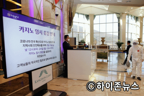 오는 수요일(26일) 06시까지 임시 휴장... "코로나19" 최고단계인 "심각"단계로 격상... 강원랜드는 23일 정부가 코로나19 사태와 관련한 대응 단계를 최고단계인 ‘심각’단계로 격상함에 따라 감염자 확산 방지를 위해 오는 26일 06시까지 임시휴장을 이틀 더 연장하기로 했다. 앞서 강원랜드는 지난 주말동안 코로나19 확진자가 늘어남에 따라 23일 …