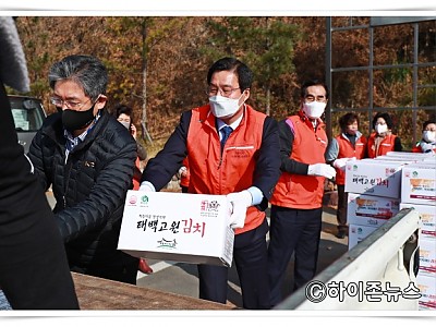 김장지원사업 전달식, 고원체육관 앞에서 개최... 코로나19 극복과 따뜻한 겨울나기를 응원하는 마음을 담아... 2020 김장지원사업 전달식이 오늘(16일) 오전 10시 30분 태백 고원체육관 앞에서 개최됐다. 태백시자원봉사센터는 그동안 매년 강원랜드복지재단의 후원으로 관내 자원봉사단체 회원들이 모여 직접 김장김치를 담그는 행복 김장나누기 행사를 진행해 왔…