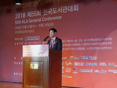 혁신과 융합의 시대, 도서관이 새 길을 열다 강원랜드, 레저.게임외 문화의 새로운 장 을 열었다 평가 하이원리조트에서 24일부터 3일 동안 열린 ‘제55회 전국도서관대회’가 전국의 도서관 사서들을 비롯한 관련 단체직원, 문화 정보학과 교수 및 학생, 전시 관계자 등 3,000여명이 참가한 가운데 26일 성료했다. ▶개회사를 하는 이상복 한국도서관협회장(출처…