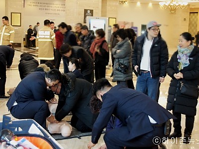 심폐소생술 시연등 안전체험 화재사고 대피요령,전기충격기 사용도... 하이원리조트(대표이사 문태곤)는 22일 하이원 그랜드호텔 로비에서 겨울 성수기를 맞아 하이원리조트를 방문한 고객들을 대상으로 안전체험 이벤트를 개최했다고 23일 밝혔다. 하이원리조트는 안전체험 이벤트를 통해 겨울시즌 리조트를 찾은 고객들에게 자동 심장충격기 사용법과 심폐소생술을 시연하고 화…