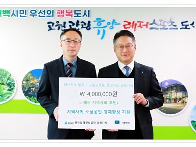 관내 소상공인 간접지원을 위한 후원금 전달... 지역상생 및 협력을 도모하고 이웃사랑을 실천하는 공단이 되도록... 한국광해광업공단 강원지사(지사장 김태혁)는 27일 태백시청을 방문해 태백시 소상공인 간접지원을 위한 아동 급식비에 사용해달라며 후원금 400만 원을 김정윤 부시장에게 전달하였다. 이날 김태혁 지사장은 “탄탄페이를 통해 저소득층 아동급식비가 관…