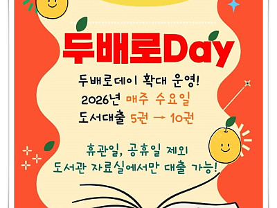 기존 월 1회에서 주 1회로 확대... 도서 최대 10권 대출… 시민 독서문화 활성화 기대... 2026년 3월 14일 태백시가 시민들의 문화 향유 기회를 확대하고 독서문화 활성화를 위해 도서관 대출 서비스를 확대 운영한다. 태백시(시장 이상호)는 도서관 ‘문화가 있는 날·두배로데이’를 기존 매월 마지막 주 수요일에서 매주 수요일로 확대 운영한다고 밝혔다.…