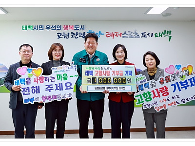 NH 농협은행 태백시지부장, 고향사랑 기부금 기탁... 앞으로도 적극적인 홍보 활동을 추진, 지속적인 업무 협의 추진... 이미선 NH농협은행 태백시지부장은 지난 1월 21일 태백시에 고향사랑기부금 100만 원을 기탁하였다. 이미선 지부장은 올해 초 태백시지부장으로 부임하였으며, 도계상고와 한국관광대를 졸업 후 NH농협은행 원주시지부 부지부장, 원주 원일로…