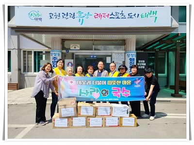 직접 만든 국수 70여 개와 빵 200개를 전달... 자발적인 시간과 노력으로 봉사하는 단체, 어려운 이웃을 위해... 지난 12일 대한적십자사봉사회 태백지구협의회는 직접 만든 국수 70여 개와 빵 200여 개를 장성동행정복지센터를 방문해 전달했다. 대한적십자사봉사회 태백지구협의회는 지난 1월에도 독거노인 화재가구에 긴급복구 및 후원품을 전달하는 등 지역의…
