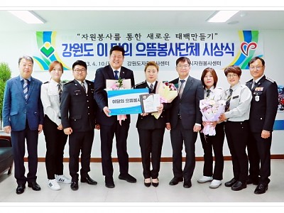 2014년에 설립되어 꾸준한 안전 점검 활동을 펼쳐... 장성여자고등학교 학생들의 안전한 야간 안심귀가 등 안전 지킴이 역활을... (사)강원도자원봉사센터(이사장 박광구)는 지난 10일(월) 태백시청에서 이상호 태백시장, 이덕하 강원도자원봉사센터장, 김재찬 태백시자원봉사센터장, 수상자 및 관계자 등이 참석한 가운데 이달(3월)의 으뜸봉사단체로 선정된 장성여…