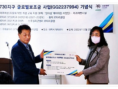2022년 보조금 24 지방자치단체 혁신평가에서 우수기관 선정... 디지털 약자, 취약계층 등을 대상으로 찾아가는 보조금 24 홍보 실시... 태백시가족센터(센터장 정신애)는 지난 2일 국제로타리 3730지구 5지역 황지로타리클럽이 결혼이주여성의 취업교육을 지원하기 위해 제빵 기계 등 물품을 전달했다고 밝혔다. 이날 전달식에는 국제로타리 3730지구 전·현…