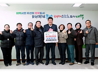 황연동 통장협의회, 관내 어려운 이웃을 위해 성금 기탁... 관내 소외계층 및 저소득 가구를 위해... 황연동 통장협의회(회장 김정애)는 지난 1월 7일 태백시에 관내 어려운 이웃들을 위해 사용해 달라며 성금 100만 원을 기부하였다. 김정애 회장은 “어려움을 겪고 있는 이웃들에게 조금이나마 도움이 되고자 기부를 결정하게 되었다. 기부에 동참해준 통장협의회…