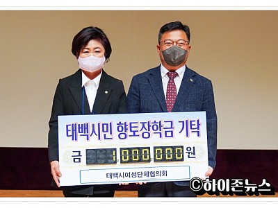 지역 인재 육성을 위해 써 달라며 일백만원 기탁... 사회적 약자의 권익 보호 및 지역사회 발전을 목적으로... 태백시여성단체협의회(회장 박정숙)은 21일 제24회 태백양성평등대회를 맞아 태백시민향토장학회에 지역 인재 육성을 위해 써 달라며 장학금 일백만 원을 기탁했다. 태백시여성단체협의회는 여성친화도시 조성에 기여하고 사회적 약자의 권익 보호 및 지역사회…