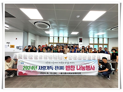 황연동 관내 취약계층 200가구를 대상, 삼계탕 나눔 행사를 진행... 정성껏 준비한 음식으로 늦더위를 건강하게 보내시길... 황연동 지역사회보장협의체(민간위원장 김태영)는 지난8월13일 관내 취약계층200가구를 대상으로 영양 가득 삼계탕 나눔 행사를 진행하였다. 이번 나눔 행사는 황연동 지역사회보장협의체 회원들의 회비와 공동모금회 지정기탁금을 활용하여 진…