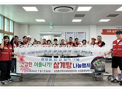 상장동 독거어르신들을 대상, 삼계탕 나눔 행사를 추진... 초복을 맞아, 어르신들이 무더운 여름 건강하게 지내시길... 상장동 지역사회보장협의체(위원장 김현중)는 지난 7월 13일 초복을 맞이하여 상장동 독거어르신들을 대상으로 삼계탕 나눔 행사를 추진하였다. 삼계탕 나눔 행사는 상장동 지역사회보장협의체 회원과 상장동 행정복지센터 직원 20여 명이 함께 준비…