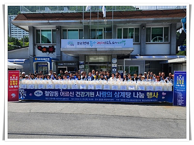 초복을 앞두고 75세 이상 어르신 500명을 대상, 삼계탕 나눔 행사를 진행... 단풍마을 이웃사촌 돌봄 사업의 이환, 관내 농공단지 기업과 단체 및 주민들의 후원으로... 철암동 지역사회보장협의체(민간위원장 유영식)는 지난 6월 29일 철암동 행정복지센터에서 초복을 앞두고 75세 이상 어르신 500명을 대상으로 ‘건강기원 사랑의 삼계탕 나눔 행사’를 진행…
