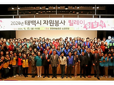 자원봉사자 150여 명이 참석한 가운데, 활동 추진경과 보고... 어려운 이웃과 따뜻한 사회를 위해 크고 작은 나눔을 실천... 태백시자원봉사센터(소장 권순주)는 지난 15일 태백문화예술회관에서 ‘2024 자원봉사 릴레이’출발식을 개최하였다고 밝혔다. 이날 행사는 고재창 태백시의회 의장, 이한영, 문관현 강원특별자치도 의원, 이경숙 태백시의회 부의장, 이인…