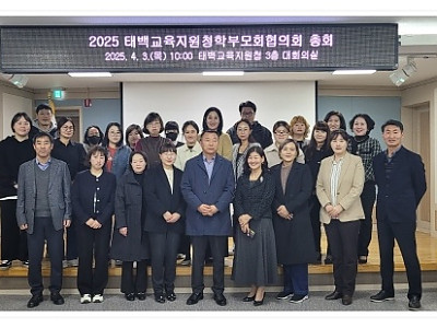 태백, 학부모 참여 통해 교육 자치 강화 시동... "더 크고, 더 밝게, 태백교육의 미래를 위한 문 열어"... 태백교육지원청(교육장 권성자)이 3일 ‘2025년 태백교육지원청학부모협의회 정기총회’를 개최하며 지역 교육의 주체로 학부모의 역할을 다시 한 번 각인시켰다. 이번 총회는 관내 25개 초·중·고등학교 학부모회장들로 구성된 협의회가 한자리에 모여 …