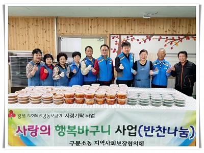 관내 독거노인 등 취약계층 60가구에 5회/1년 반찬 지원... 결식으로 고통받는 사람들이 없는 구문소동을 만들기 위해... 구문소동 지역사회보장협의체는 지난 21일 「사랑의 행복바구니(반찬나눔)」 사업을 진행했다. 이번 사업은 동 지역사회보장협의체 지정기탁 사업으로 관내 독거 어르신 등 취약계층 60가구에 연 5회 반찬을 지원하고 안부를 살폈다. 장을 보…