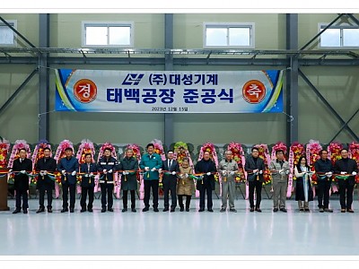 (주)대성기계 태백공장 준공식을 가져... 고향인 지역에서 공장을 열고, 태백시와 함께 성장하길 바라며... 태백시(시장 이상호)는 동점산업단지 입주기업인 ㈜대성기계(대표이사 김대훈)의 태백공장이 15일 오전 11시에 동점산업단지(동점동 521)에서 준공식을 했다고 밝혔다. 준공식은 이상호 태백시장, 유관기관 기관장, 협력사 관계자 및 지역주민 40여 명 …