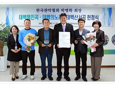 태백의 노래, 태백산서곡 헌정식을 개최... 태백시를 전국적으로 홍보할 수 있는 계기가 되길... 태백시(시장 이상호)는 지난 26일 제47회 대한민국관악경연대회 지정곡인 태백행진곡을 비롯한 태백의노래, 태백산서곡 헌정식을 개최했다. 태백행진곡은 한국관악협회 박병학 회장이 작곡한 곡으로 검룡소, 황지연못, 태백산 등 태백의 명소를 담고 있으며, 밝고 힘찬 …