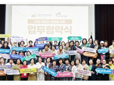양 기관 정보교류 및 상호협력을 통한 강원 여성들의 역량 성장... 정보 및 인적 물적 지원 교류 등 공동 발전 도모 약속... (재)한국여성수련원(원장 고창영)과 (사)강원도여성단체협의회(회장 안정희)는 5월 24일(수) 10시, 강릉시 옥계면 (재)한국여성수련원에서 강원 여성의 성장과 역량개발을 위한 업무협약을 체결했다. 이날 업무협약식에는 고창영 (재…