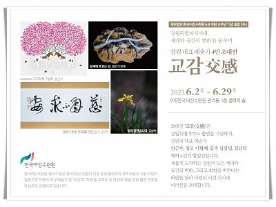 임근우, 경로 이형재, 동주 심상덕, 김남덕 4인의 협업전시... 입체, 조각, 서예, 사진 등 다채로운 작품을 한 자리에서 만나는 기회... (재)한국여성수련원(원장 고창영)이 오는 6월 2일(금)부터 강원특별자치도 출범과 개원 14주년을 기념한 특별한 전시 ‘교감(交感)’을 개최해 눈길을 끌고 있다. 강원도의 대표 예술가로 손꼽히는 임근우(입체), 겸로…