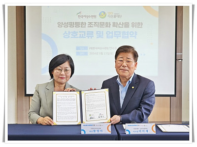 일, 가정 양립과 양성평등 조직문화 위한 협력... 감정노동자를 대상으로 한 치유와 회복 프로그램 개발에도 지속적인 협력을 추진... (재)한국여성수련원(원장 함영이)과 서울특별시 120다산콜재단(이사장 이이재)는 5월 23일(목), 16시 강릉 한국여성수련원에서 업무협약을 체결했다. 본 협약은 일·가정 양립과 양성평등한 조직문화 확산, 그리고 직원들의 역…