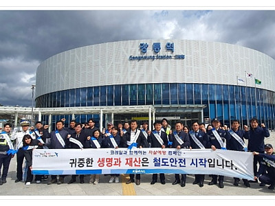 시민 재해 예방을 위한 유관기관, 고객참여단 합동 캠페인 실시... 선 밟으면 다쳐요, 걷지도, 뛰지도 말고 움직이지마 등 안전 이용 수칙 홍보... 한국철도 강원본부(본부장 이동기)는 16일(화) 오전 10시 강릉역에서 강릉시청·경찰서·소방서, 철도특별사법경찰대 강릉센터 등 유관기관과 제 6기 고객참여단이 함께 에스컬레이터 안전 이용 및 자살예방 합동 캠…