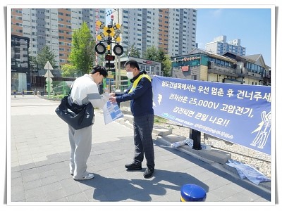 철도건널목 사고예방 및 안전문화 정착에 노력... 4월 철도교통 안전의 달을 맞아, 건널목 안전 캠페인 시행... 한국철도 강원본부 동해관리역은 26일(수) 4월 철도교통 안전의 달을 맞이하여 동해관리역과 동해시설사업소 합동으로 교통질서 지키기 안전 캠페인을 시행했다. 이번 캠페인은 동해시 북삼동 소재 제철건널목에서 오전 9시부터 건널목을 지나가는 운전자 …