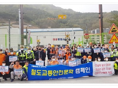 삼척시 도계읍 전두 건널목에서 교통안전 캠페인 시행... 철길 무단통행 금지, 철도건널목 사고예방을 위한 안전수칙 등 홍보... 한국철도 강원본부는 4월 13일 삼척시 도계읍 소재 전두 건널목에서 민·관 합동으로 건널목 교통안전 캠페인을 시행하였다. 이번 캠페인은 한국철도공사 강원본부 주관으로 삼척시, 경찰서, 소방서, 철도특별사법경찰대 등 유관기관과 봉사…